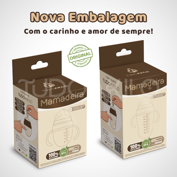 - Mamadeira de silicone: resistente, segura e confortável para o bebê.